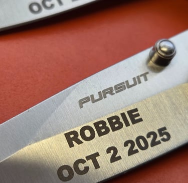 Powered by our fiber laser, we engrave directly on bare metal with depth, clarity, and permanence that diode lasers simply can't match.